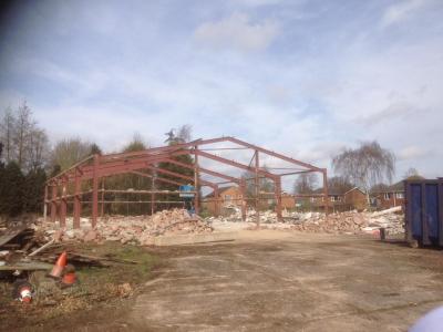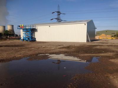 80 ft x 60 ft x 17 ft - (24.4m x 18.3m x 5.3m) This 80 ft x 60 ft x 17 ft - (24.4m x 18.3m x 5.3m) used steel framed building which was orignally from Lincolnshire was sold and re-erected in Oxford for Hanson Cement along with new cladding and used roller doors.