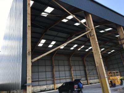 This 140 ft x 74 ft x 38 ft - (42.7m x 22.6m x 11.5m) used steel framed building, originally located at Bowmer & Kirkland's head office, was sold to a waste transfer centre in Morecombe. The two overhead cranes were sold seperately to a crane company in Rotherham.